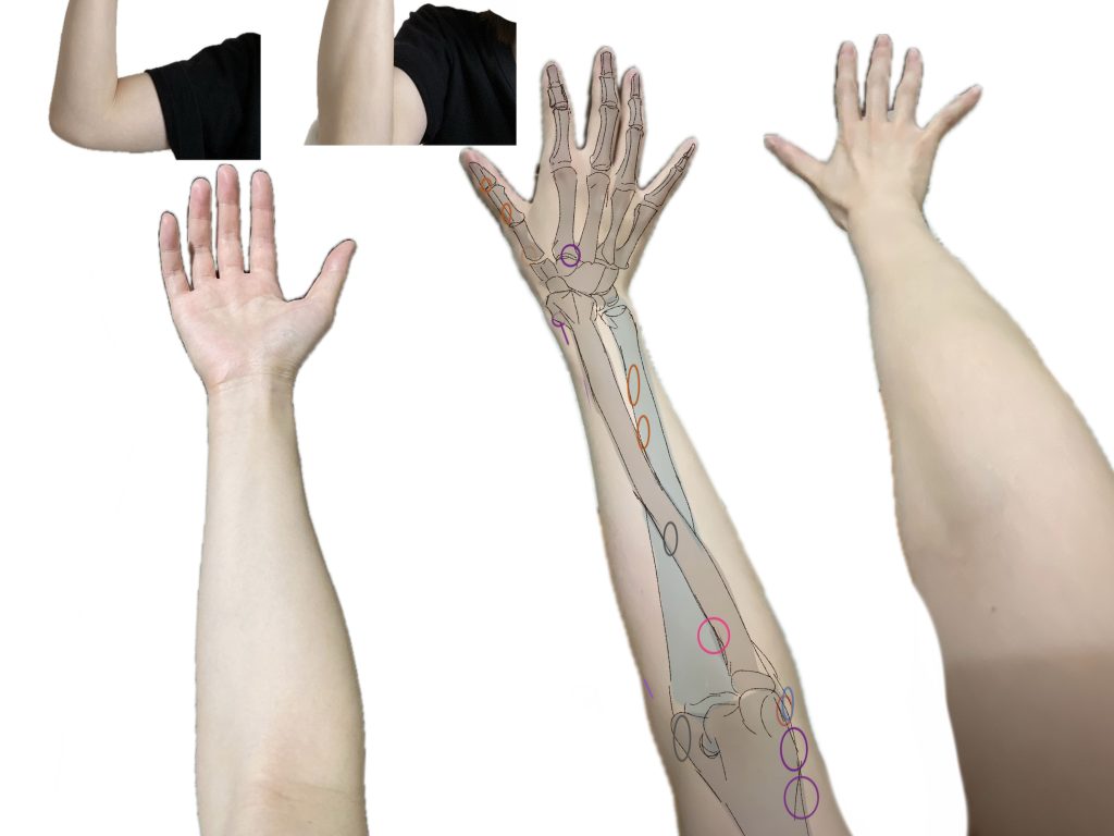 勉強するためにいつも本やネットで調べていたのですが、例えばみんな大好き腕橈骨筋、図で見るとそのちらっと見えている隣の筋肉が円回内筋、橈側手根屈筋だと思うけど、どのくらい幅があってその向こうはどこにつながって、この出っ張りは上腕骨であっているのか、毎回図で資料を探す手間に挫けそうだった私を救ってくれたのは「teamLabBodyPro」というアプリ。素人では氷山の一角しか良さを味わっていない気がしますが、素人でもとても分かりやすい。